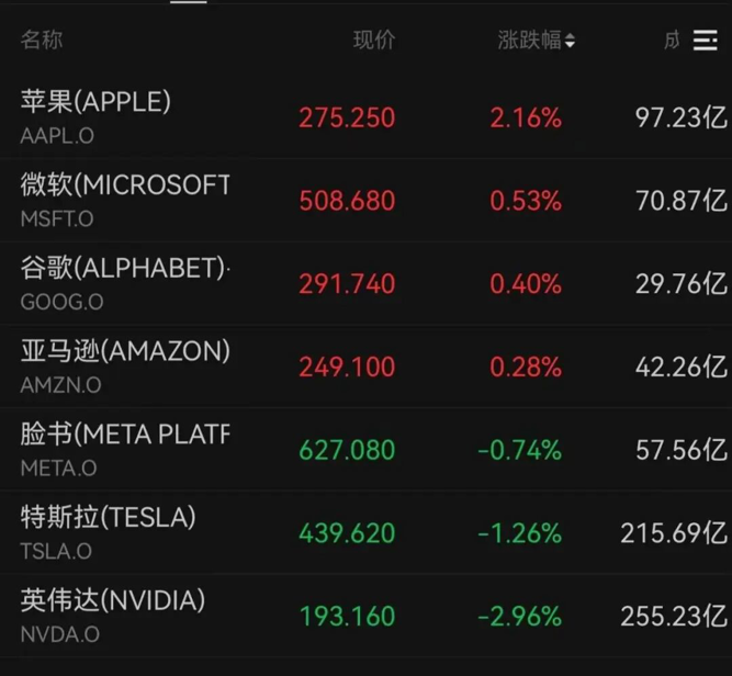 美股科技巨头再度承压,英伟达下跌2.96%。