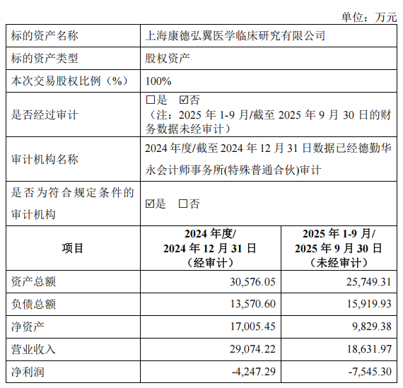 截至2025年9月末,康德弘翼、津石医药的资产总额分别为2.57亿元、14.57亿元,净资产分别为9829.38万元、8.71亿元。