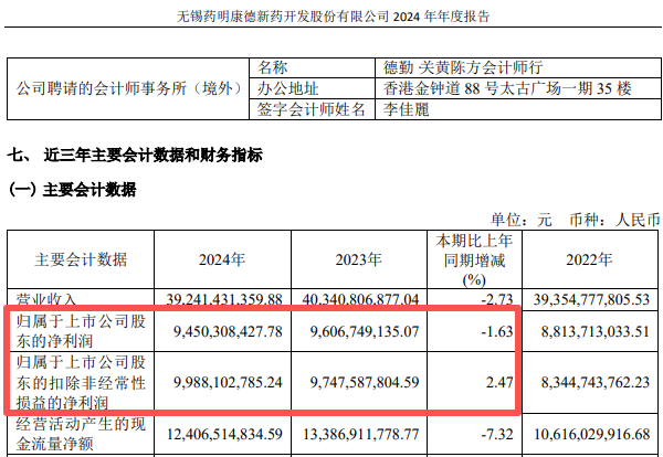 年报显示,药明康德2024年的归母净利润、扣非后净利润分别是94.50亿元、99.88亿元。以此估算,上述交易产生的收益将超过9.45亿元。