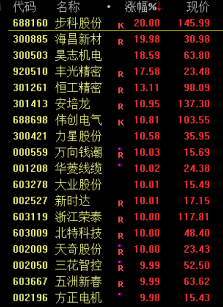 机器人概念股集体爆发,步科股份、三花智控等近20股涨停。