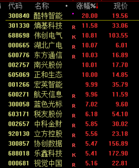 AI智能体概念股表现活跃,酷特智能、南兴股份等涨停。
