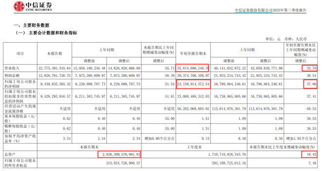 10月24日晚间,中信证券率先发布2025年第三季度报告。数据显示,截至2025年9月底,中信证券总资产达2.03万亿元,成为国内首家资产规模突破两万亿元的证券公司。