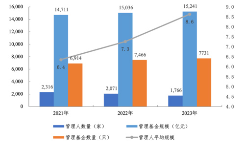 一是头部阵营进一步集中。截至2023年末,深圳共有152家管理基金规模超20亿元的私募股权、创投基金管理人,管理基金产品1954只,同比分别增加5.6%、8.1%;管理基金规模合计11444.7亿元,同比增加2.2%,占深圳私募股权、创投基金管理人整体规模的74.7%,较2022年末占比提升0.7个百分点。