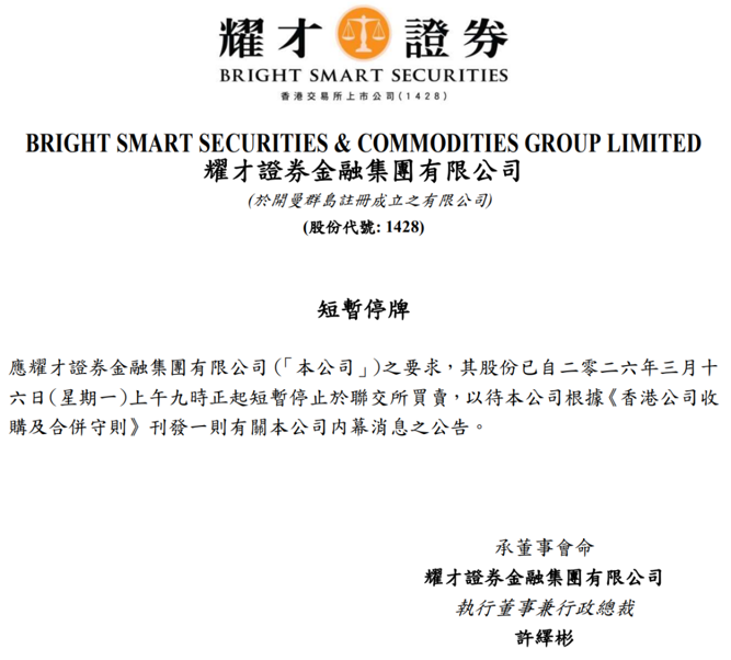 耀才证券停牌