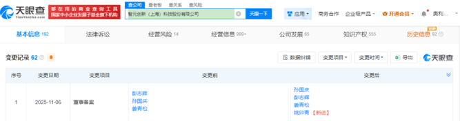 同时,智元创新的董事备案名单从3名变为4名,新增人员为姚卯青。