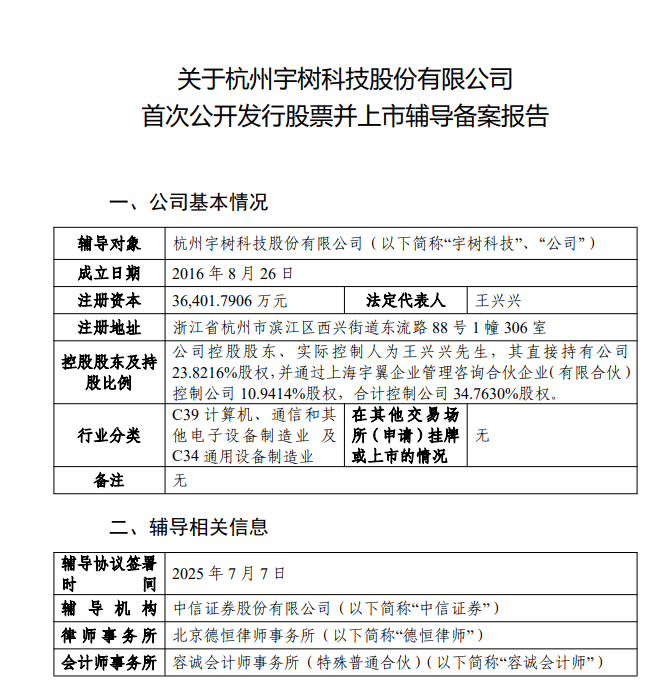 7月18日,中国证监会官网显示,宇树科技已开启上市辅导,辅导内容涉及公司治理、股权结构、资产的法律权属等事项。