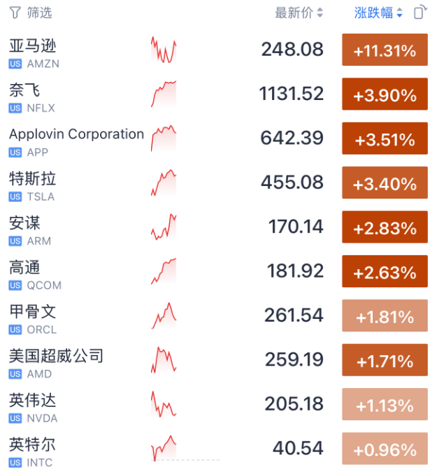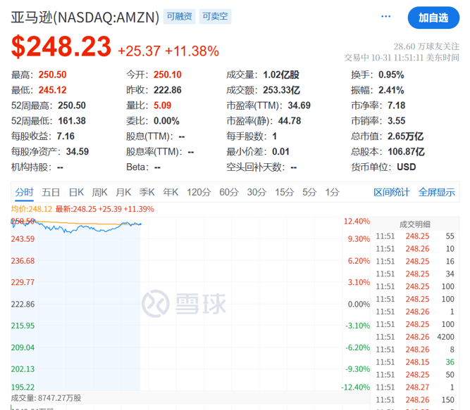 亚马逊股价大涨10%,此前该电商巨头表示其云计算业务第三季度收入增长20%,超出华尔街预期。