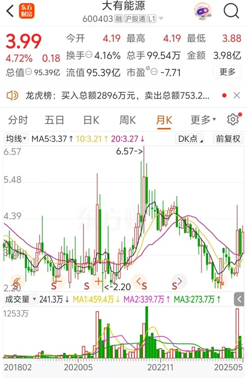 截至5月16日收盘,大有能源市值为95.39亿元。
