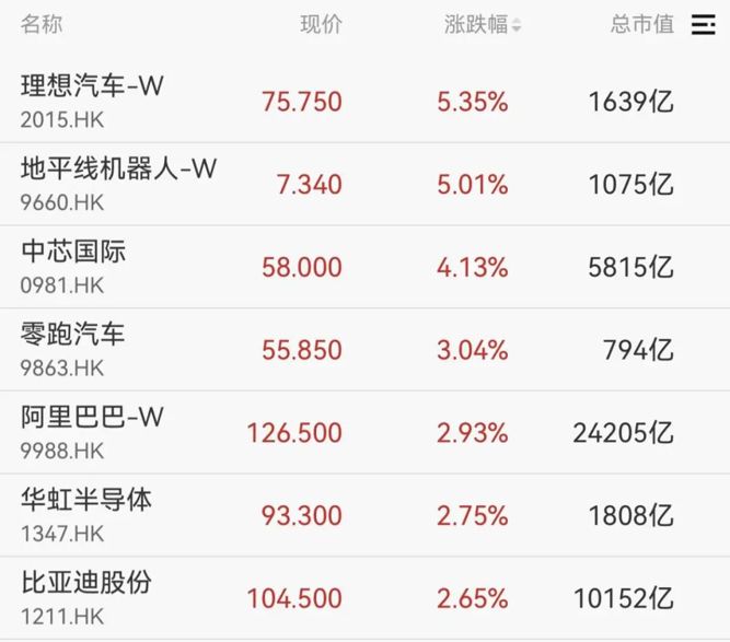 港股方面,恒生科技指数涨1.87%,理想汽车、地平线机器人、中芯国际等涨幅居前。
