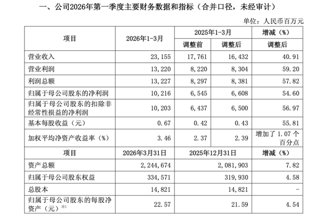 消息面上,4月9日,中信证券发布2026年第一季度业绩快报,公司实现营业收入231.55亿元,同比增加40.91%;归属于母公司股东的净利润为102.16亿元,同比增加54.6%;基本每股收益为0.67元。