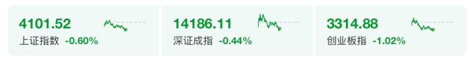 1月15日上午,A股三大股指集体走低。截至午间收盘,沪指跌0.6%,深证成指跌0.44%,创业板指跌1.02%。