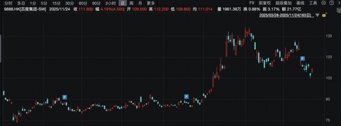 消息面上,摩根大通发表研究报告表示,将百度的投资评级由“中性”上调至“增持”。