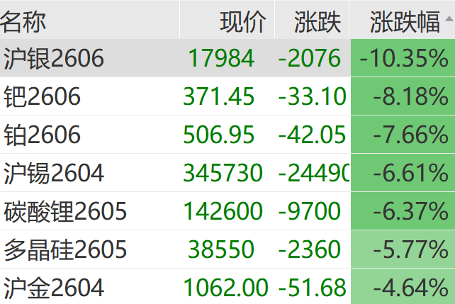 沪金尾盘跌超4%,沪银跌超10%,铂、钯、锡等品种纷纷走低。