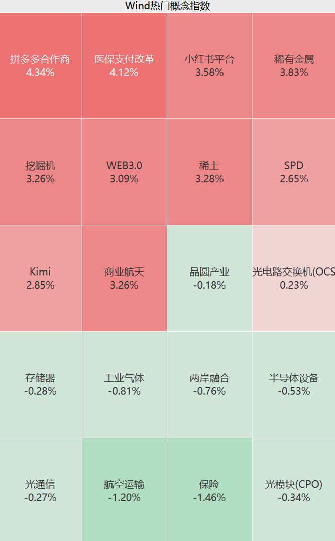盘面上,上午发电设备、互联网、文化传媒、航天军工等板块走强,医保支付改革、SPD、稀有金属、核聚变等概念股火热;光模块、保险、光通信、半导体等概念股小幅回调。
