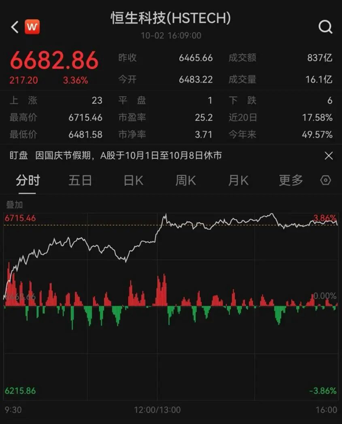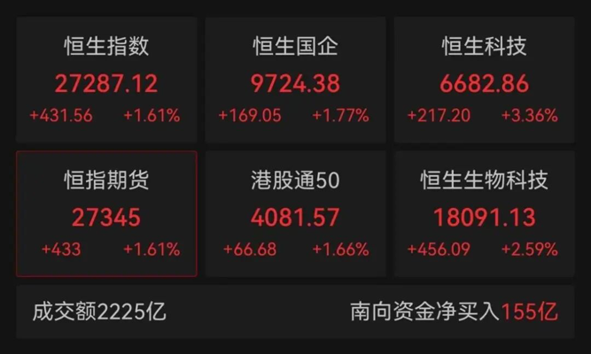 【导读】四季度首个交易日,恒生科技指数大涨3.36%,恒生指数一举突破27000点