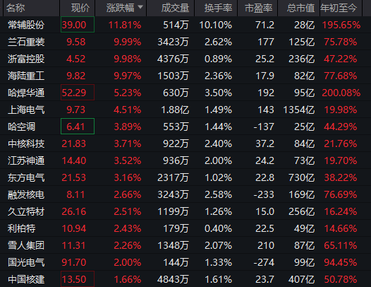 A股核聚变板块盘初走高,常辅股份涨超10%,兰石重装、浙富控股、海陆重工涨停。