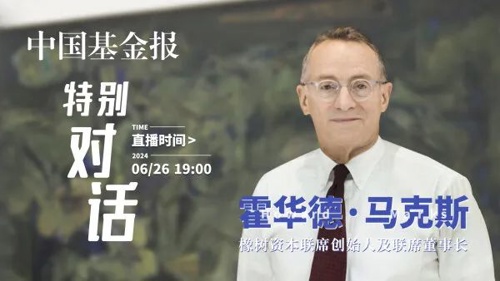 6月26日19:00,《特别对话》重磅上线!中国基金报邀请到橡树资本联席创始人及联席董事长霍华德·马克斯,分享了他对中国金融市场的独到见解和个人的投资哲学。