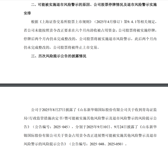 但留给ST新华锦的时间已经不多了。从监管方今年8月下发决定书推算,新华锦方面需在2026年2月前完成占用资金清收,否则公司股票将被停牌,并可能最终走向终止上市的结局。