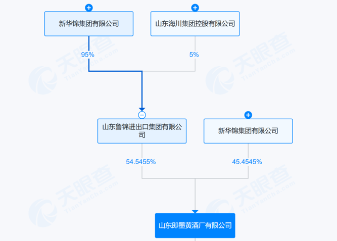 当前,即墨黄酒共有2名股东,分别是新华锦集团和山东鲁锦集团,持股比例分别为54.5455%和45.4545%。其中,山东鲁锦集团是新华锦集团的控股子公司。