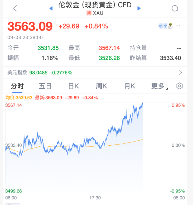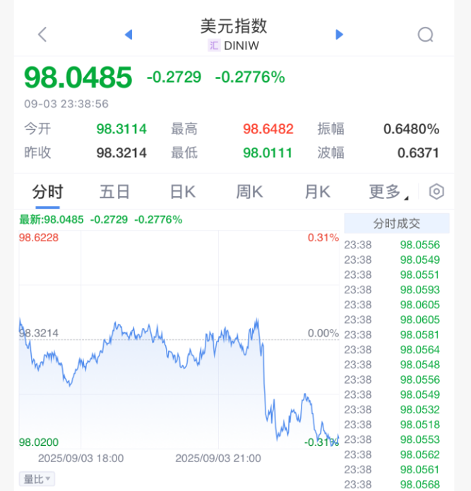 受降息预期影响,美元指数跳水,黄金大涨,金价再创历史新高。