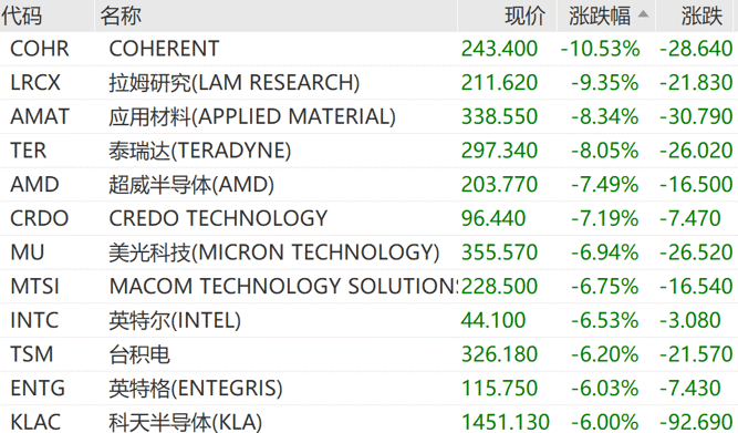 近日,谷歌发布超高效AI内存压缩算法TurboQuant。据称,这是一种新的压缩方法,可在不损失准确性的前提下,将大型语言模型运行时的缓存内存占用至少减少至原来的1/6、性能提升8倍。该技术旨在提高人工智能模型的效率,这是各大领先实验室的一个主要目标。Cloudflare首席执行官马修·普林斯将TurboQuant称为“谷歌的DeepSeek”。投资者担心,这可能会减少对人工智能存储芯片的需求。人工智能存储芯片是训练谷歌、OpenAI和Anthropic等公司的大型语言模型的关键组成部分。COHERENT大跌10.53%,拉姆研究跌9.35%,应用材料跌8.34%,泰瑞达跌8.05%,超威半导体跌7.49%,美光科技跌6.94%,英特尔跌6.53%,台积电跌6.20%。中概股普遍下跌
