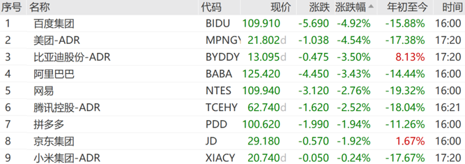 中概股普遍下跌,纳斯达克中国金龙指数跌2.55%,万得中概科技龙头指数跌2.68%。百度集团跌4.92%,美团跌4.54%,比亚迪股份跌3.50%,领跌万得中概科技龙头指数成份股。个股方面,小马智行跌超14%,万国数据跌逾6%,小鹏汽车跌超6%,老虎证券跌超6%,百度集团跌近5%;华住集团涨超2%,BOSS直聘涨逾1%。美联储理事米兰提议