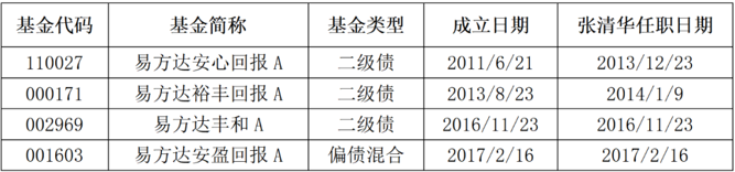 2020年7月,张清华升任公司副总经理,成为易方达基金首批“投研系”高管。卸任副总经理后,他仍担任公司多资产投资决策委员会委员、基金经理。
