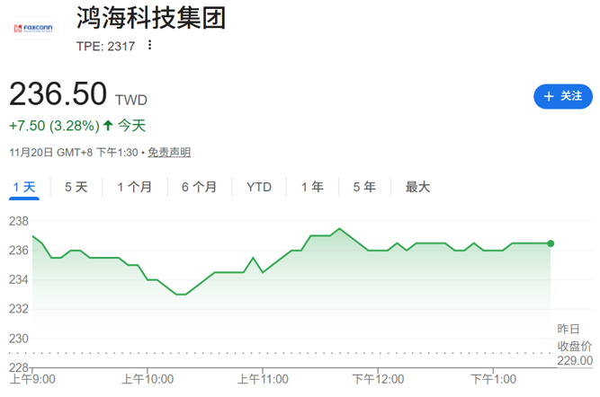 台积电和鸿海科技这两只股票分别上涨4.3%和3.28%。