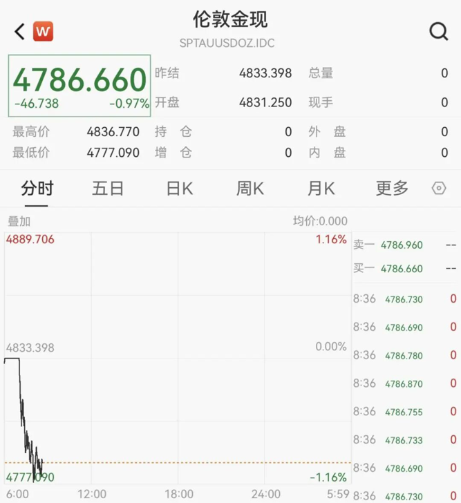 美国总统特朗普围绕格陵兰岛的强硬立场及其突然的转折,直接搅动了金市格局,金价创下新高后回落。1月22日,现货白银日内跌幅扩大至2%,现报90.99美元/盎司;现货黄金日内跌幅一度扩大至1%,现报4786.66美元/盎司。