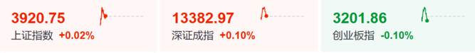 12月24日,A股市场开盘微涨,上证指数报3920.35点,涨0.01%;深证成指、创业板指涨0.07%。盘初市场冲高回落,截至发稿,上证指数、深证成指微红,创业板指飘绿。