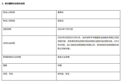 韩歆毅现为蚂蚁集团总裁兼首席财务官,于2021年8月出任天弘基金董事长。韩歆毅任职期间,天弘基金全面、稳健发展,天弘基金对韩歆毅为公司高质量发展作出的贡献表示感谢。