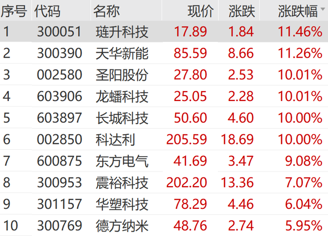 4月16日,A股电力设备板块盘初走强,电池产业链方向大爆发。圣阳股份走出6连板,可川科技直线拉涨停。