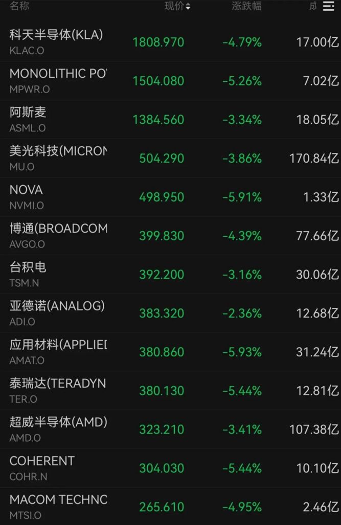 受该报道影响,与OpenAI相关的板块和个股承压。美股芯片股集体下跌,科天半导体、博通、超威半导体等跌幅明显。