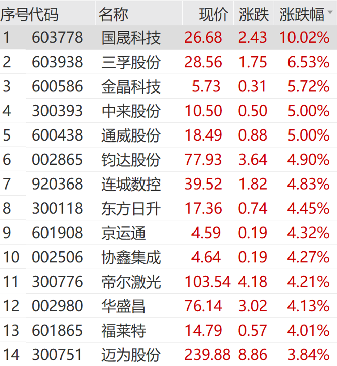 A股光伏板块上午亦有较好表现,国晟科技开盘不久后火速拉涨停,三孚股份、金晶科技、中来股份、通威股份等跟涨。
