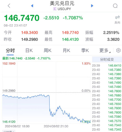美元兑日元延续跌势,一度触及146.41,为2月2日以来最低水平。