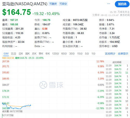 亚马逊股价暴跌超10%,该公司第二季度的业绩引发了人们对大型科技公司在人工智能相关资本支出方面超额投入的担忧。这家电子商务巨头的营收未达到华尔街预期,并发布了令人失望的业绩指引。