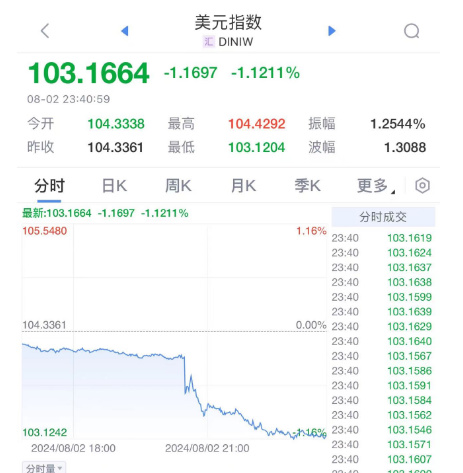 今晚美股的暴跌,原因就是美国7月非农就业报告意外爆冷。尽管市场降息预期大幅升温,但衰退担忧已经代替降息前景成为了市场主导因素。