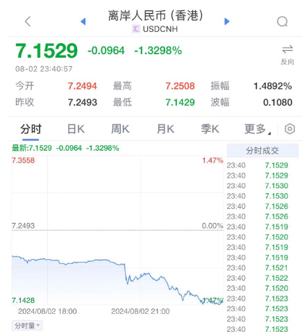 人民币汇率一度暴涨1000点,离岸人民币兑美元收复7.15关口,创今年1月以来新高!