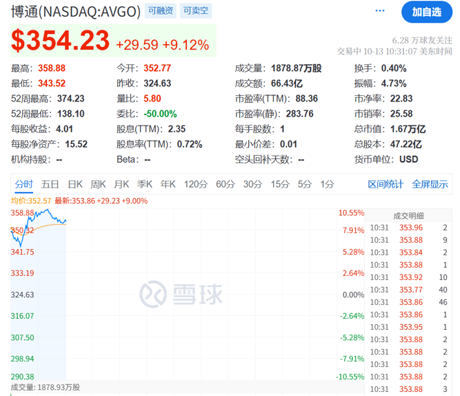 10月13日晚间,OpenAI与博通公司签署了一项多年期合作协议,将在定制芯片与网络设备方面展开协作,这标志着这家人工智能初创公司在扩充计算基础设施方面迈出新一步。受消息提振,博通股价大涨。