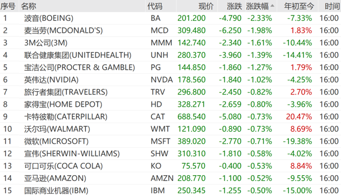 波音跌2.33%,麦当劳跌1.98%,3M公司跌1.61%,领跌道指成份股。