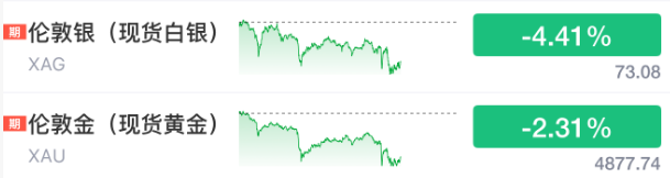 现货白银跌超4%,黄金跌超2%。分析师指出,“如果美国能够避免攻击伊朗,市场焦虑将会缓解,这对避险资产黄金和白银是不利的,俄罗斯与乌克兰的谈判同样如此。”