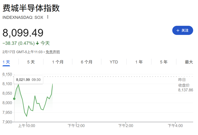 费城半导体指数(衡量芯片制造商表现的关键指标)一度跌超2%。