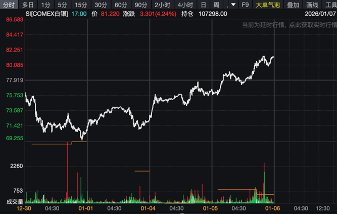 COMEX黄金期货再度升破4500美元/盎司,COMEX白银期货日内突破81美元/盎司。