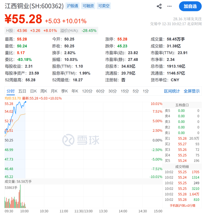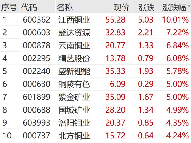 个股方面,江西铜业涨停,盛新锂能、国城矿业、精艺股份、紫金矿业等跟涨。