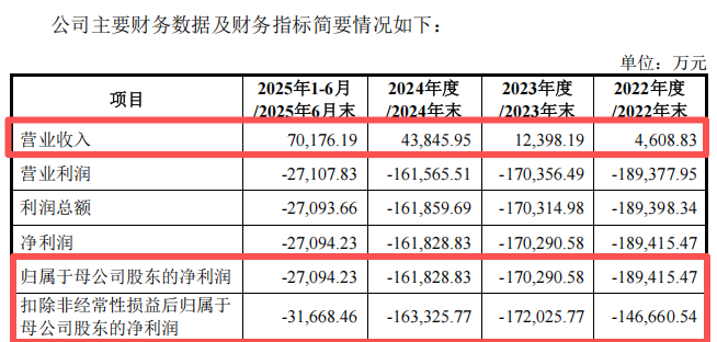 2022年至2024年及2025年上半年,摩尔线程的营业收入分别为4608.83万元、1.24亿元、4.38亿元及7.02亿元,归母净利润分别为-18.94亿元、-17.03亿元、-16.18亿元及-2.71亿元。