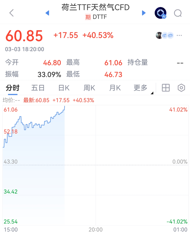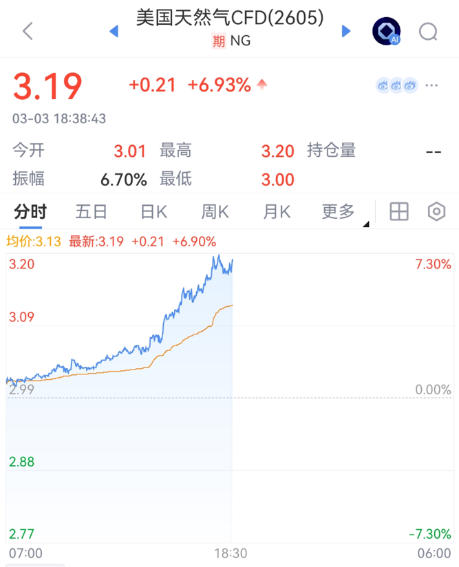 卡塔尔因伊朗战争停止天然气产出,欧洲天然气价格涨超40%,美国天然气盘中涨超7%。