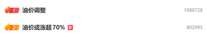 油价“火出圈”,“油价调整”“油价或涨超70%”登上微博热搜榜前两位。此外,“世界油阀关闭”等词条也登上热搜,引发网友热议。