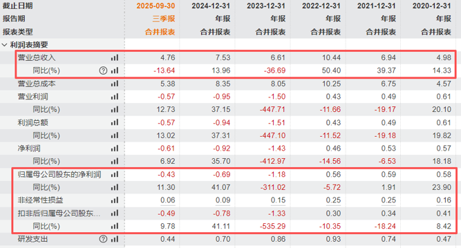 业绩方面,清越科技发布的2025年三季报显示,公司亏损有所收窄,但整体经营仍面临压力。报告期内,公司营业总收入为4.76亿元,同比下降13.64%;归母净利润为-4335.34万元,同比上升11.3%。