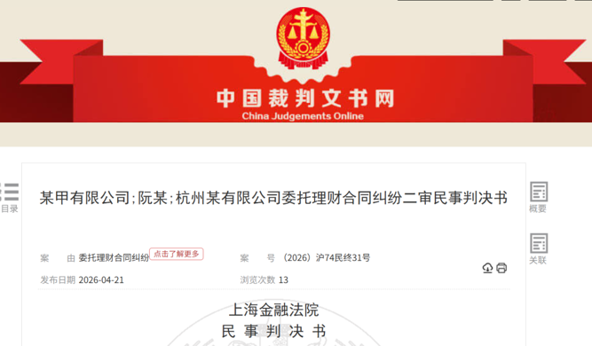而就在前一天(4月21日),中国裁判文书网披露的另一则关联判例显示,因相同的托管履职疏漏,金融街证券需对另外两名投资者合计1600多万元的本金损失,承担10%的赔偿责任。