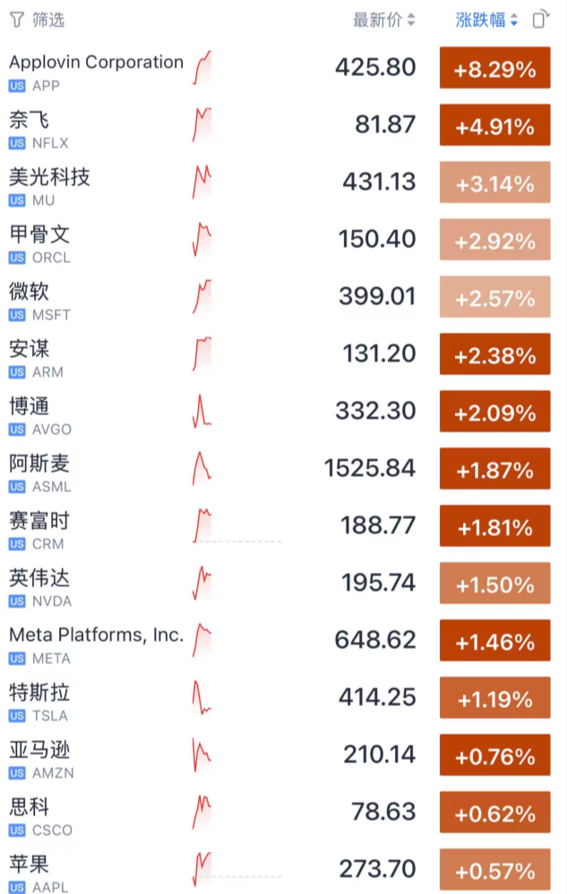 另一家AI参与者甲骨文股价涨约3%,领跑软件股的持续反弹。